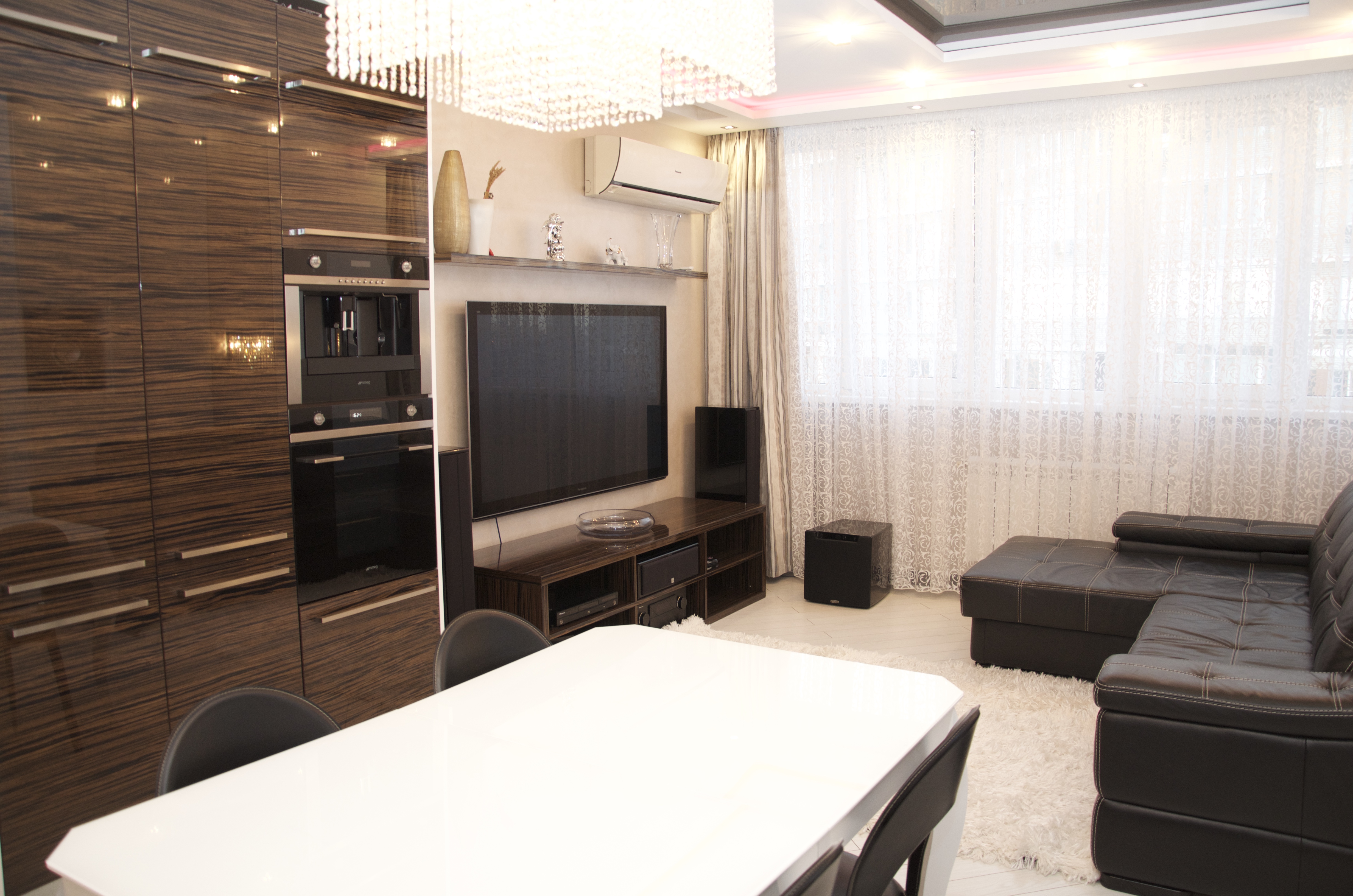 Делаем все комплексно и под ключ, закрываем все вопросы. По запросу клиента закупаем необходимые материалы для интерьера: шторы, кухонную мебель и технику и другие аксессуары.
